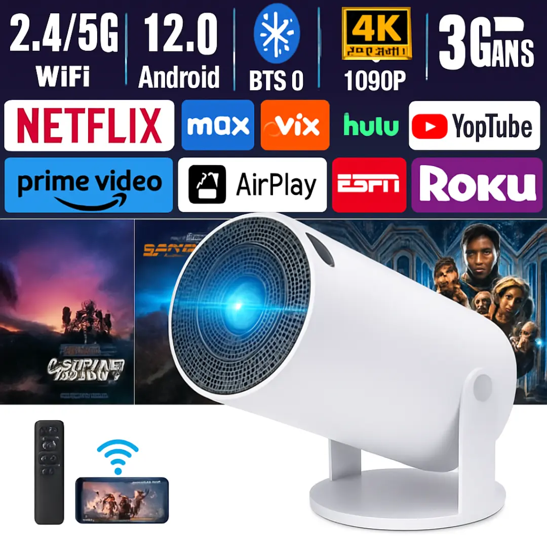 Proyector portátil y multifuncional con sistema operativo Android, ideal para disfrutar de contenido en pantalla grande en cualquier lugar. Con 9.000 lúmenes de brillo, resolución Full HD 1080p y conectividad WiFi y Bluetooth, ofrece una experiencia de entretenimiento envolvente.