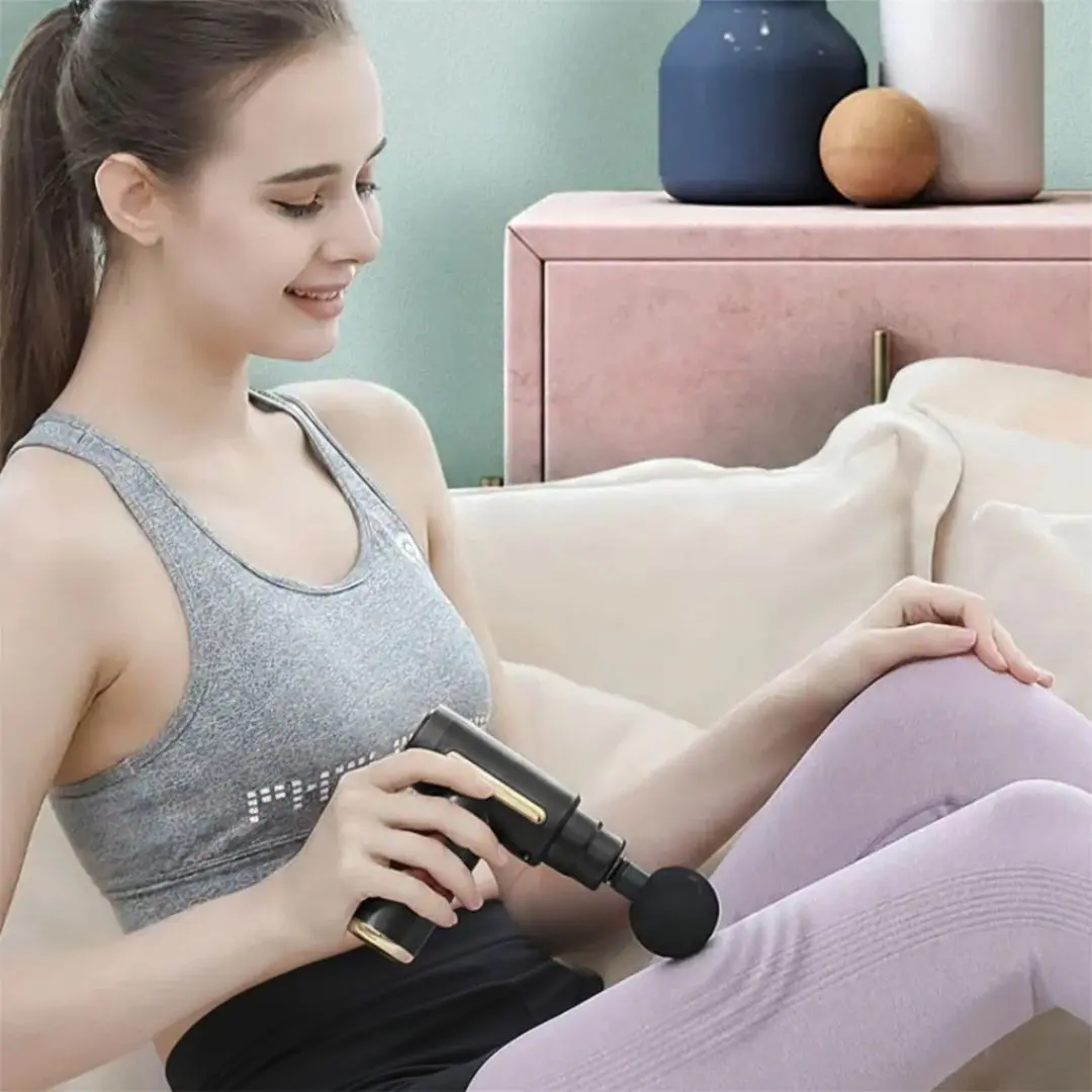 La pistola masajeadora utiliza tecnología de percusión que estimula profundamente el tejido muscular mediante vibraciones de alta frecuencia.