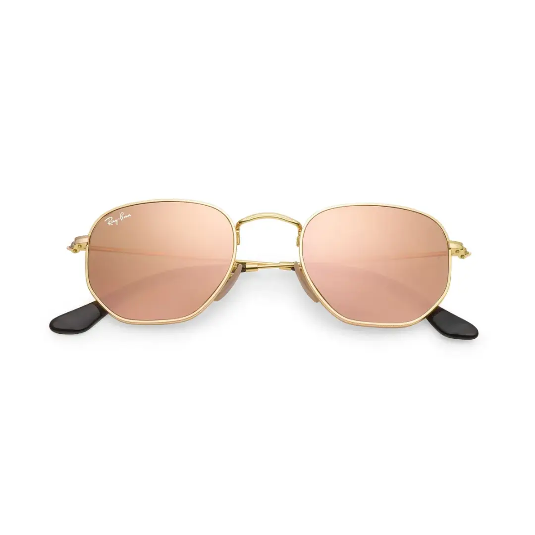 Su marco dorado y las lentes rosa espejadas reflejan confianza, estilo y una personalidad vibrante.